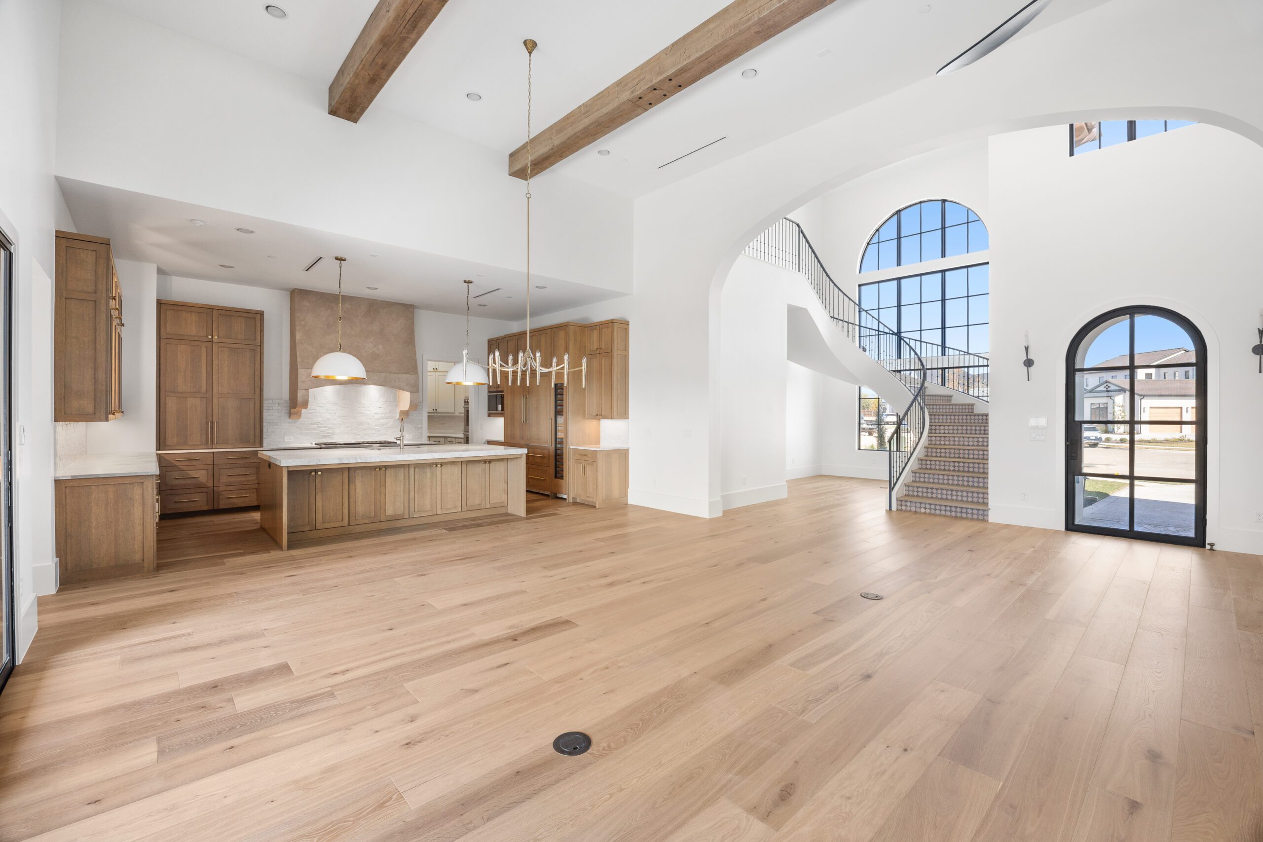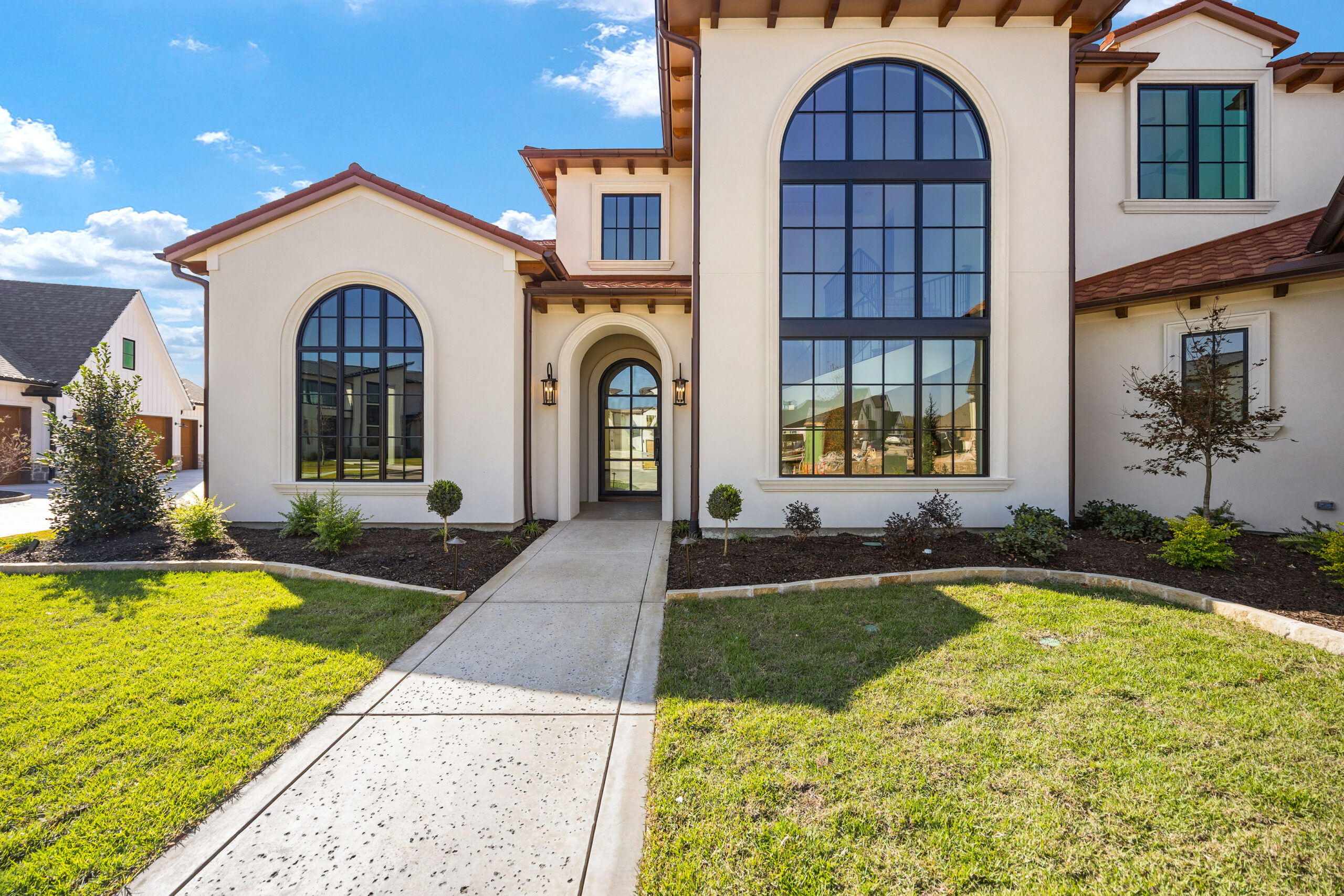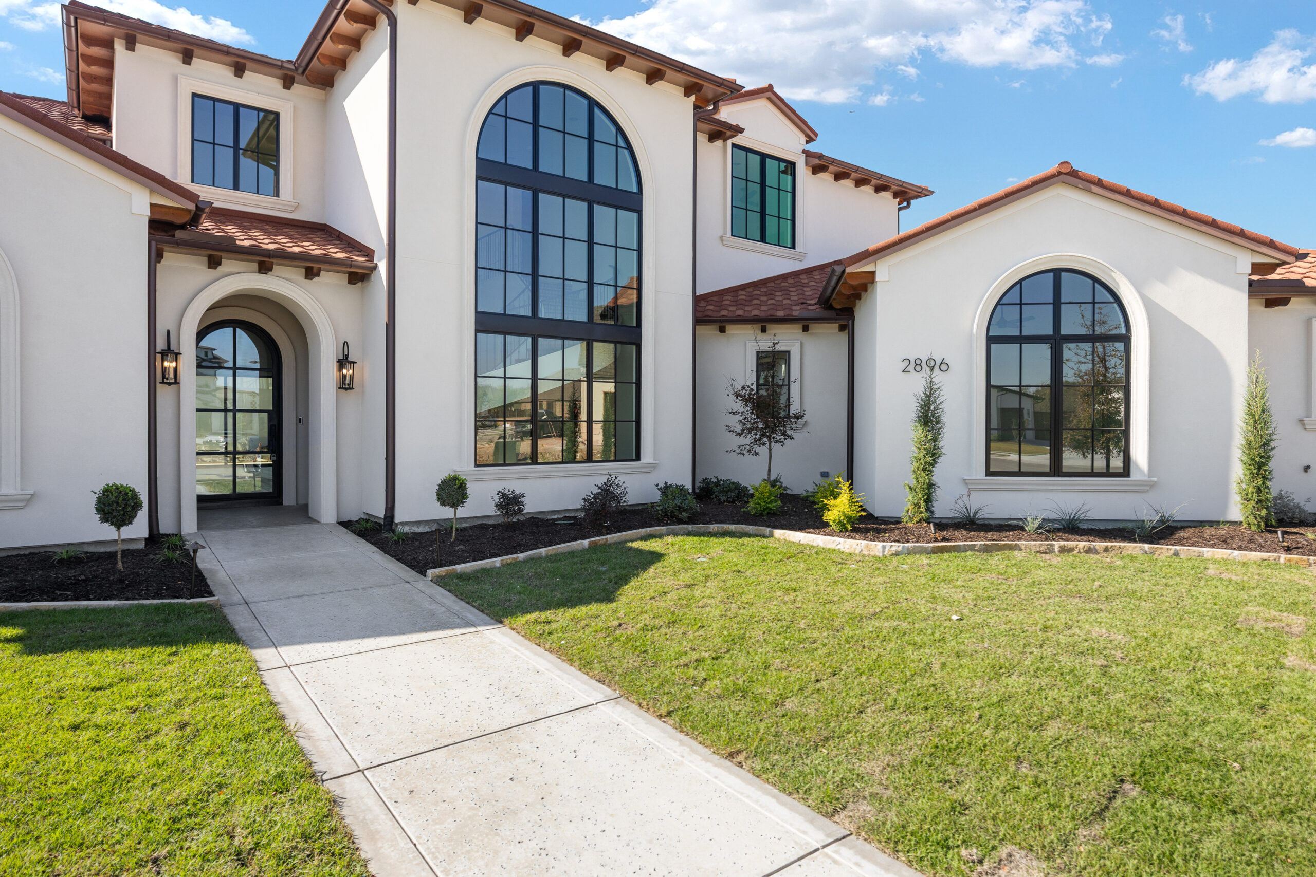 Nestled on a prime corner lot in the coveted Trophy Club, Texas, this Mediterranean-inspired modern home boasts a perfect blend of luxury, style, and function. Spanning over an expansive floor plan, the residence features five generously sized bedrooms and six beautifully appointed bathrooms, ensuring both space and privacy for the entire family. As you approach, you’re welcomed by a beautiful large window and a grand four-car garage, offering ample room for vehicles and additional storage. The home’s layout seamlessly connects living spaces, beginning with an open-concept family, living, and dining area that’s ideal for both casual living and entertaining. High ceilings and large windows allow for an abundance of natural light, creating an airy and inviting atmosphere. For those who love to entertain, the home includes an outdoor cooking area, a dedicated media room for movie nights and a spacious game room perfect for relaxation or hosting guests. The chef-inspired kitchen is outfitted with top-tier appliances and a large prep area, while the oversized pantry ensures plenty of room for storage. Step outside through the sliding glass doors to the covered patio, featuring a stunning masonry fireplace, perfect for cozy evenings under the stars. The patio is equipped with automatic shades, providing both privacy and comfort at the touch of a button. The owner’s suite offers a true retreat, with a private patio that overlooks serene green space. This tranquil outdoor area offers both privacy and beautiful views of the natural surroundings, providing the perfect spot to unwind. Backing up to lush green space, this home combines privacy with breathtaking vistas, making it an idyllic place to call home. Every detail has been meticulously crafted, offering a rare opportunity to live in Trophy Club’s most desirable neighborhood, The Falcon Estates.